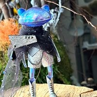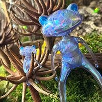 を内包し、光を受けて青や虹色に輝きます。